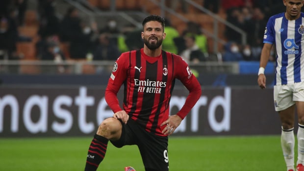 Milan’s first chance was out of nothing as Olivier Giroud curler was fingertipped over the bar by Diogo Costa.
